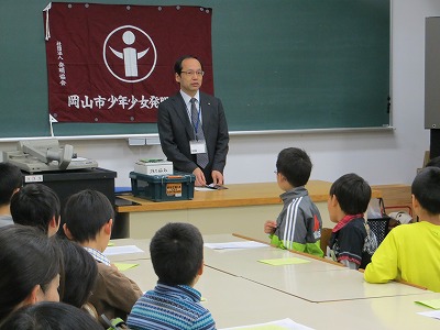 ![]() バックアップしている岡山市教育振興会長 辻さんからご挨拶 |