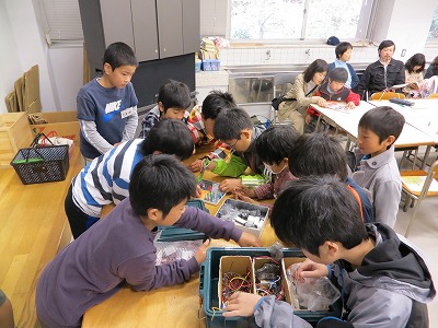 ![]() お話しが続いたのでちよっと休憩… なにやら道具箱の中をみんなで探っています |