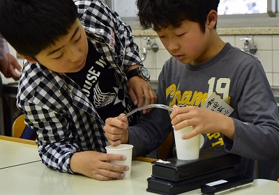 ![]() サイホンで紙コップの水を移す工夫の実験 |