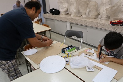 ![]() しっかり万力で固定して,メモリを見ながら 決まった深さに穴開けしています |