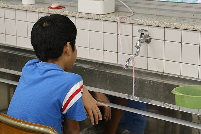 ![]() ビニルチューブに布ひもを通して水?・・・ |