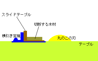 改善...スライドテーブルを取り付けて,そのうえに材料を置くようにする。つまり,簡易型の横ひき盤にする。
